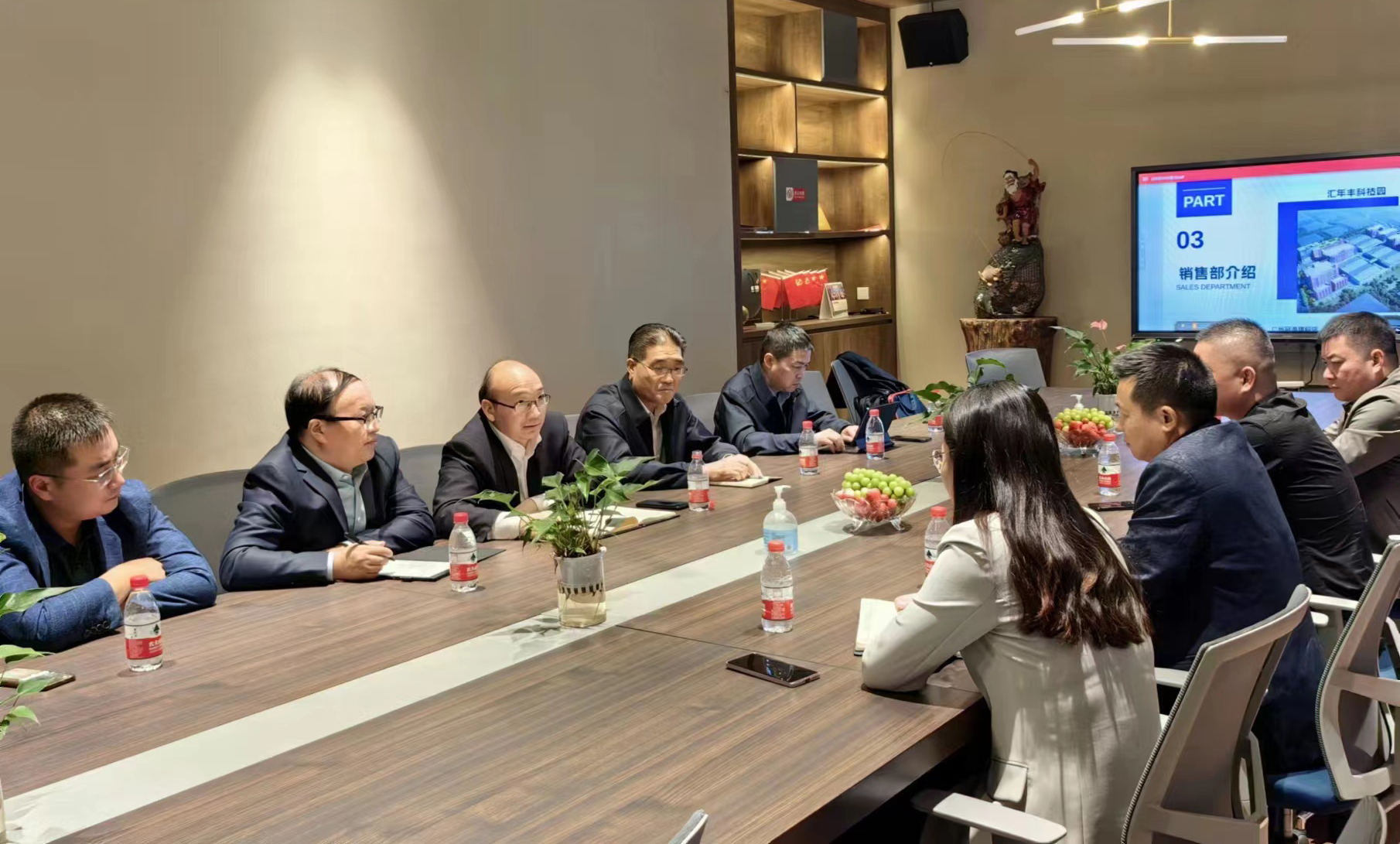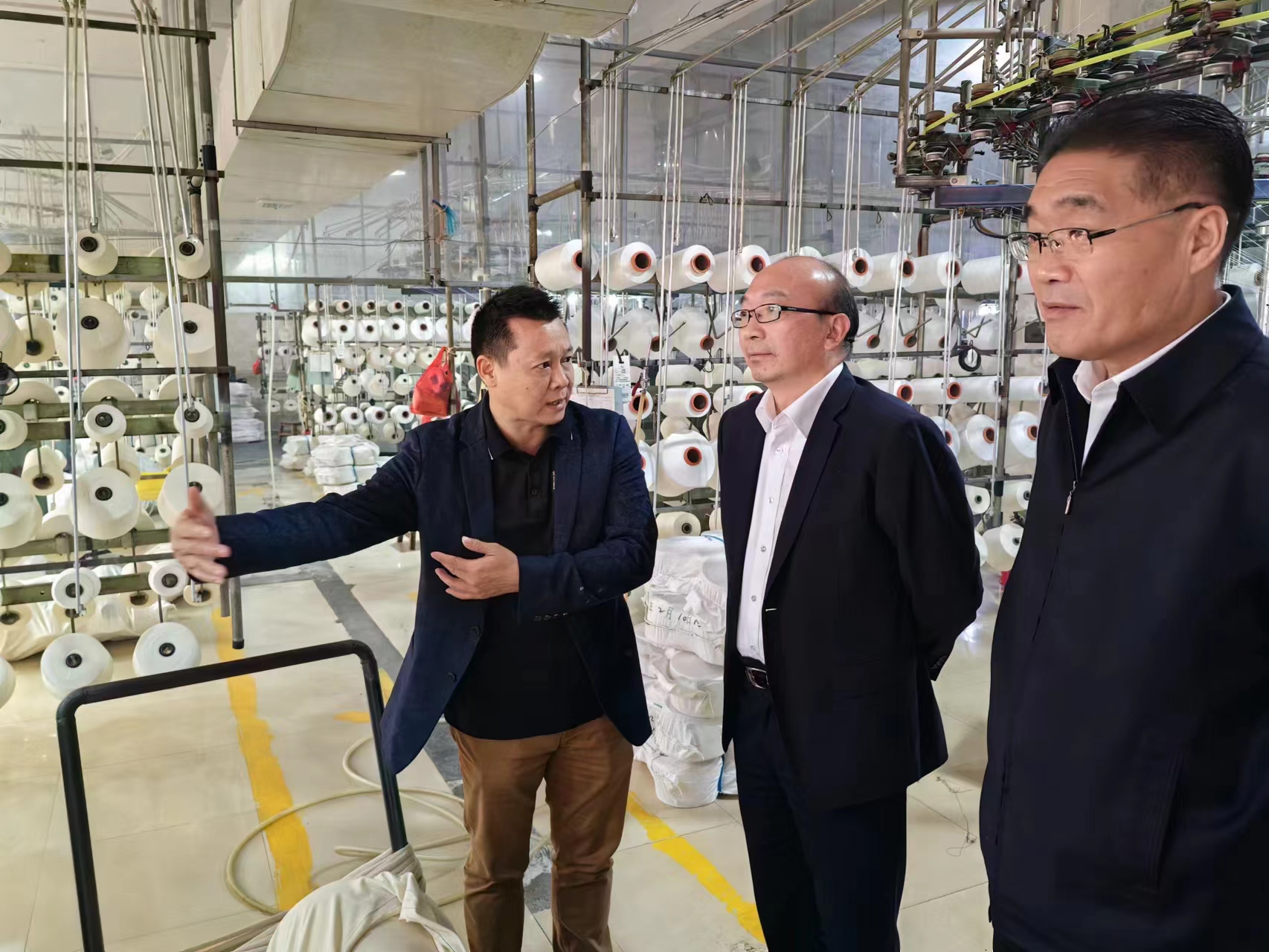 在匯年豐紡織公司,丁銳一行在陸汝針總經(jīng)理的陪同下參觀了該公司紡織生產(chǎn)線,并就產(chǎn)品定位、成本、質(zhì)量及交期等有關情況進行了座談交流。雙方表示,工投集團與匯年豐紡織建立了良好的業(yè)務合作關系,希望下一步能夠繼續(xù)加深合作,擴大業(yè)務量。