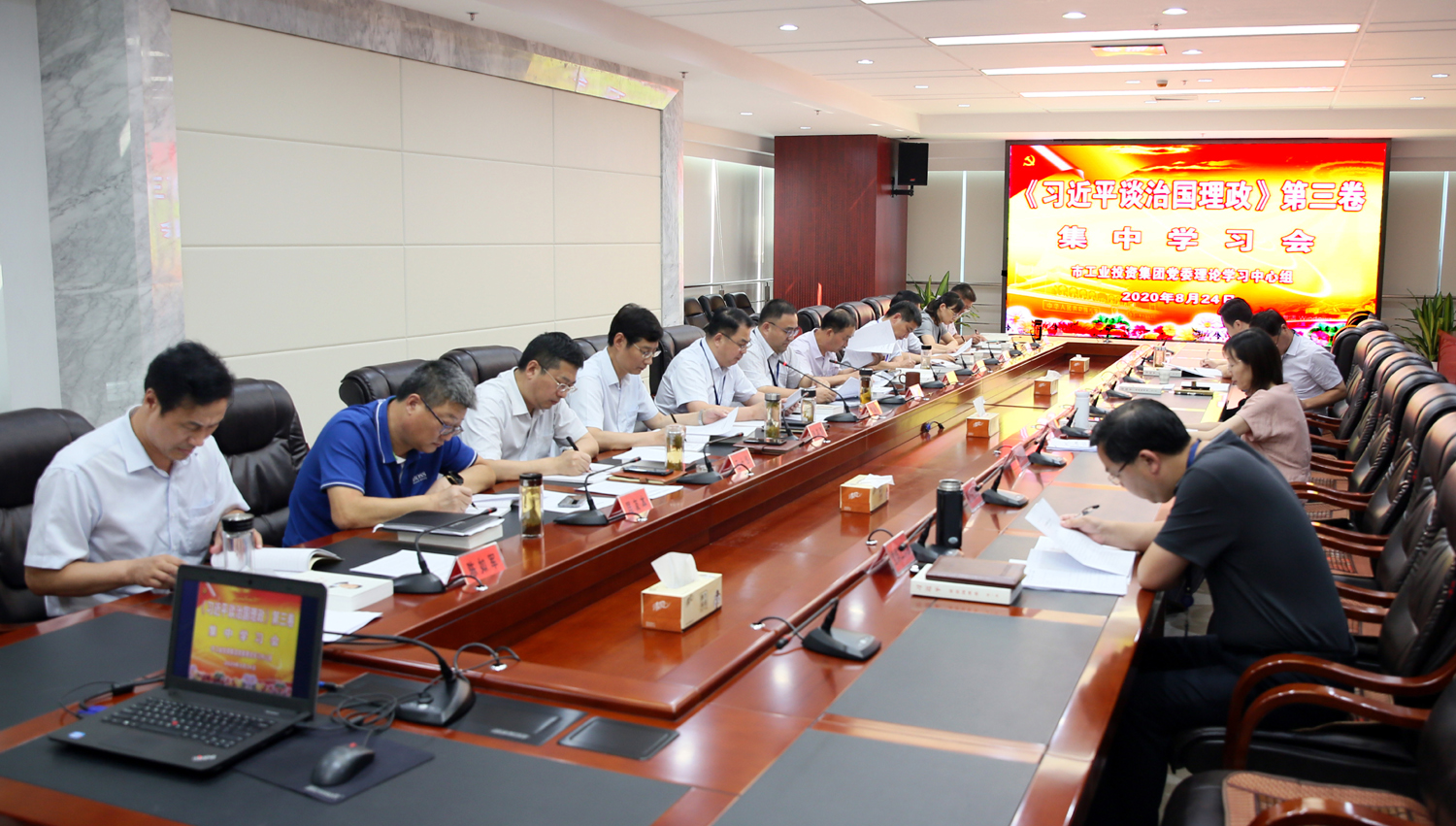 8月24日,集團(tuán)公司黨委理論學(xué)習(xí)中心組召開(kāi)集中學(xué)習(xí)會(huì),專(zhuān)題學(xué)習(xí)《習(xí)近平談治國(guó)理政》第三卷。黨委書(shū)記、董事長(zhǎng)楊龍主持學(xué)習(xí)會(huì)。