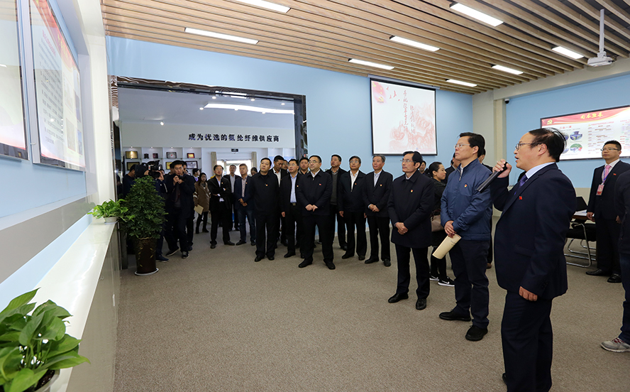 11月9日,市委組織部副部長(zhǎng)、市黨建辦主任王玉祥,市國(guó)資委黨組書(shū)記、主任徐丙超帶隊(duì)的全市國(guó)企黨建工作現(xiàn)場(chǎng)觀摩活動(dòng)走進(jìn)氨綸公司。市屬各國(guó)企黨委副書(shū)記、黨群部門(mén)負(fù)責(zé)人,部分省屬企業(yè)黨建工作分管負(fù)責(zé)人等參加觀摩活動(dòng)。集團(tuán)公司黨委書(shū)記、董事長(zhǎng)楊龍,黨委副書(shū)記戴鴻鳴陪同觀摩。