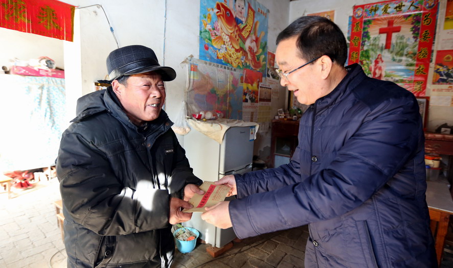 120日上午,集團公司總經(jīng)理胡建明代表集團黨委專門來到對口扶貧點,贛榆區(qū)沙河鎮(zhèn)北朱果村走訪慰問貧困戶。在沙河鎮(zhèn)人大主席曹軍華的陪同下,胡建明共看望了十戶貧困戶,每到一家,都關切地詢問他們生產(chǎn)生活狀況和遇到的困難,勉勵他們堅定信心,樹立戰(zhàn)勝困難的勇氣,并為他們送去慰問金和節(jié)日的祝福。
