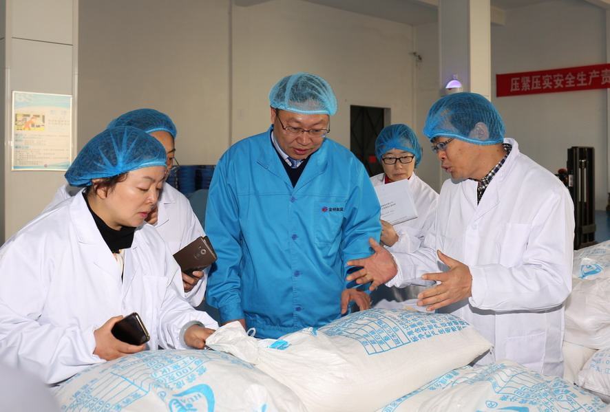 11月7日,組長(zhǎng)高湘陵、省經(jīng)信委消費(fèi)品工業(yè)處姜輝、張洪忠處長(zhǎng)一行在市經(jīng)信委副主任盧忠寶的陪同下,到金橋制鹽公司進(jìn)行國(guó)家食鹽定點(diǎn)生產(chǎn)企業(yè)證書(shū)、食鹽批發(fā)許可證書(shū)換證驗(yàn)收審核。集團(tuán)公司總經(jīng)理胡建明、總會(huì)計(jì)師匡友本參加驗(yàn)收。