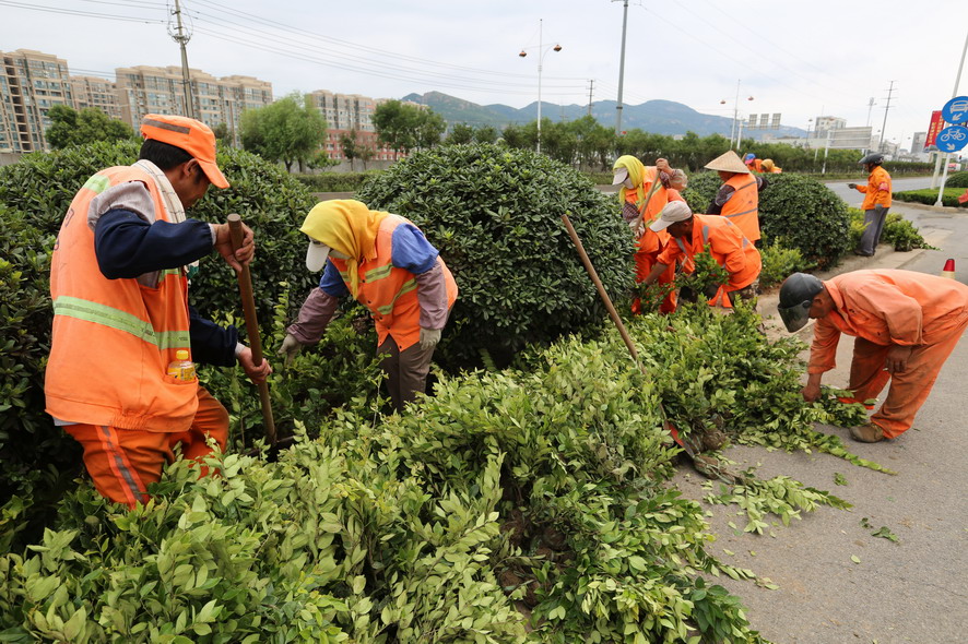 立秋以來,人們沒有感受到時節(jié)變換帶來的爽爽涼意,每天30多度的高溫高濕的天氣依舊籠罩港城,“秋老虎”似乎也不愿歸去,依然揮發(fā)著“余威”。在開發(fā)區(qū)臨港產(chǎn)業(yè)園區(qū),華茂公司廣大職工始終堅守在創(chuàng)衛(wèi)工作的前沿,迎高溫、斗酷暑,苦戰(zhàn)“秋老虎”,在補植苗木、市政維修、環(huán)衛(wèi)整治等新一輪創(chuàng)衛(wèi)突擊攻堅戰(zhàn)中,加班加點,揮汗如雨,奮力爭先,勞動熱情空前高漲。