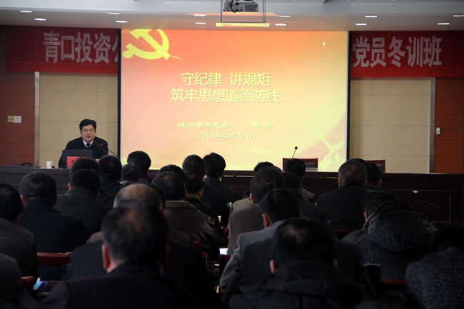 為加強(qiáng)黨員干部廉潔教育,提高拒腐防變意識,2月27日下午,青口公司邀請市紀(jì)委監(jiān)委、第八紀(jì)檢監(jiān)察室主任梁浩作了題為《守紀(jì)律講規(guī)矩 筑牢思想道德防線》的專題報告,公司領(lǐng)導(dǎo)班子成員和全體在崗黨員參加此次講座。