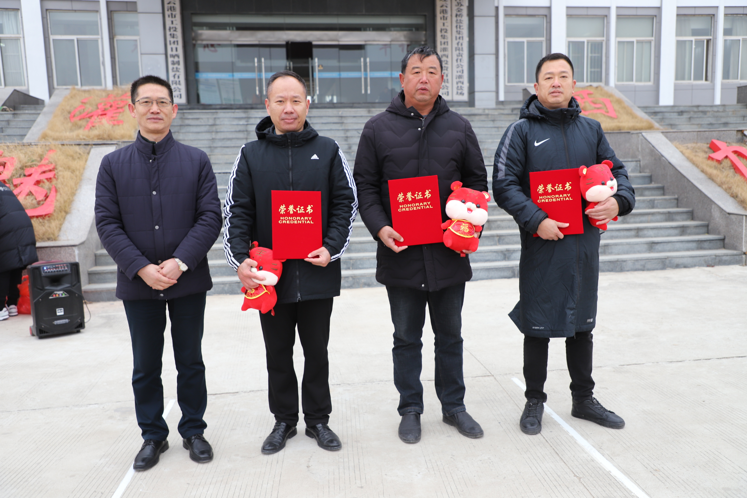 閉幕式上宣布新河制鹽公司、埒南制鹽公司、宵洋物流公司分獲團(tuán)體一至三名,并頒發(fā)團(tuán)體以及個(gè)人榮譽(yù)證書,為每位獲獎(jiǎng)?wù)甙l(fā)放灌西投資公司吉祥物——“鹽寶寶”。(西宣)