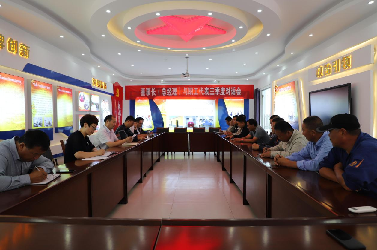 10月8日下午,在新河制鹽分公司會議室召開三季度董事長(總經(jīng)理)與職工代表對話會,投資公司黨委書記、董事長、總經(jīng)理李國文,常務(wù)副總經(jīng)理吳衛(wèi)平,黨委副書記、工會主席王宏參與職工代表對話。