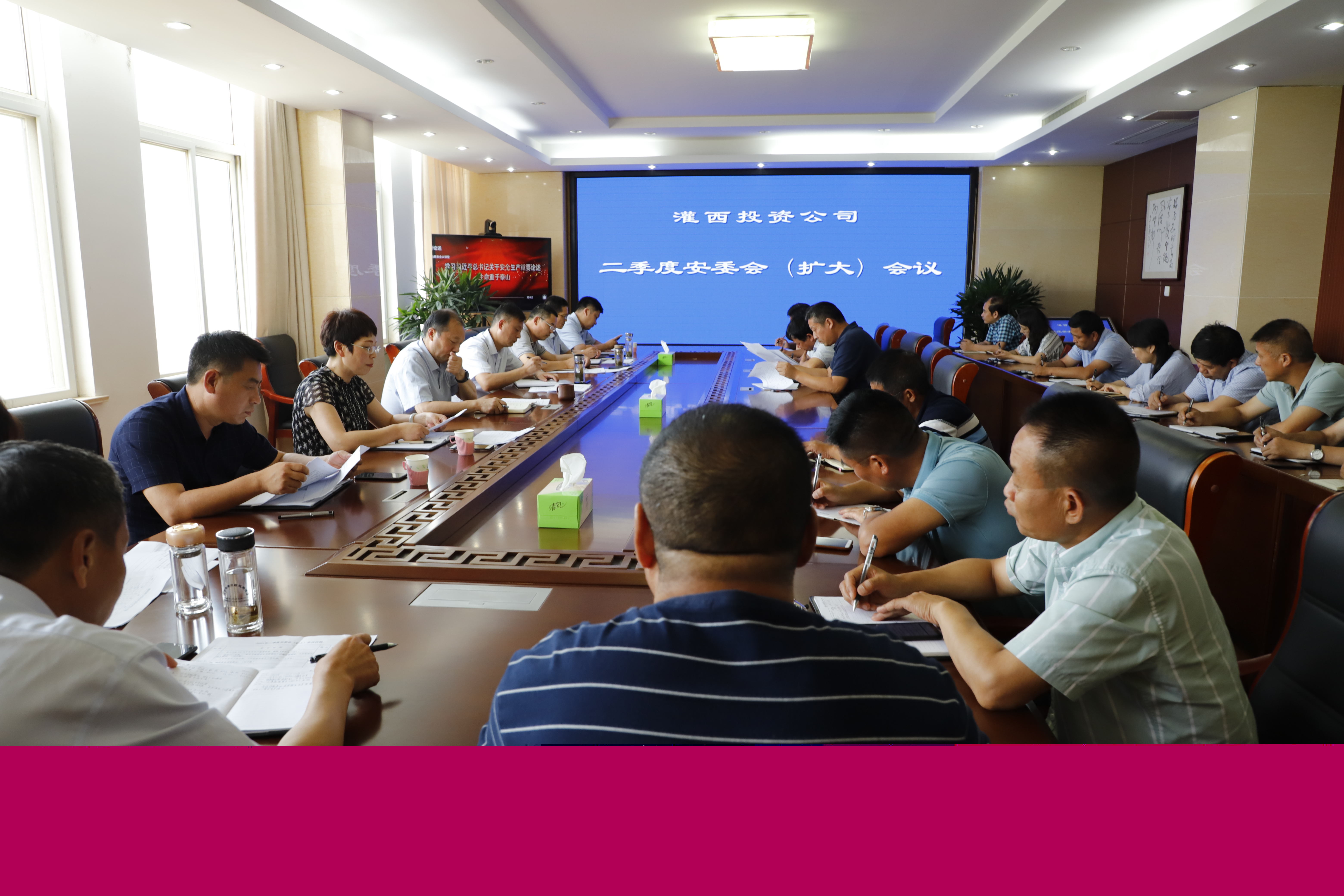 7月8日下午,灌西投資公司在三樓會議室召開二季度安委會(擴大)會議,公司班子成員及各單位負責人參加。