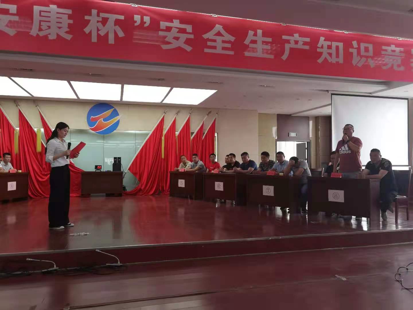 安全生產(chǎn)知識(shí)競賽活動(dòng)是該公司開展的安全生產(chǎn)月活動(dòng)的一部份,共有新河制鹽分公司、埒南制鹽分公司、宵洋物流公司、西旺水產(chǎn)公司、南翼綠化公司、生產(chǎn)服務(wù)公司、資源管理中心、明威農(nóng)業(yè)公司等有八支代表隊(duì)參加比賽,比賽內(nèi)容主要為安全生產(chǎn)基本常識(shí)、新《安全生產(chǎn)法》等。此次安全競賽分為必答題、搶答題和觀眾題等多種形式,整個(gè)搶答比賽過程緊張激烈,選手搶答積極,流暢作答,比分依次上升,搶答環(huán)節(jié)險(xiǎn)情頻頻,有的代表隊(duì)搶答違規(guī)被扣分,好容易搶到的分?jǐn)?shù)又被扣了,有的代表隊(duì)稍顯謹(jǐn)慎,很少搶到答題,但穩(wěn)打穩(wěn)扎,得分依然不低。觀眾答題環(huán)節(jié),人人舉手踴躍答題,現(xiàn)場氣氛熱烈。
