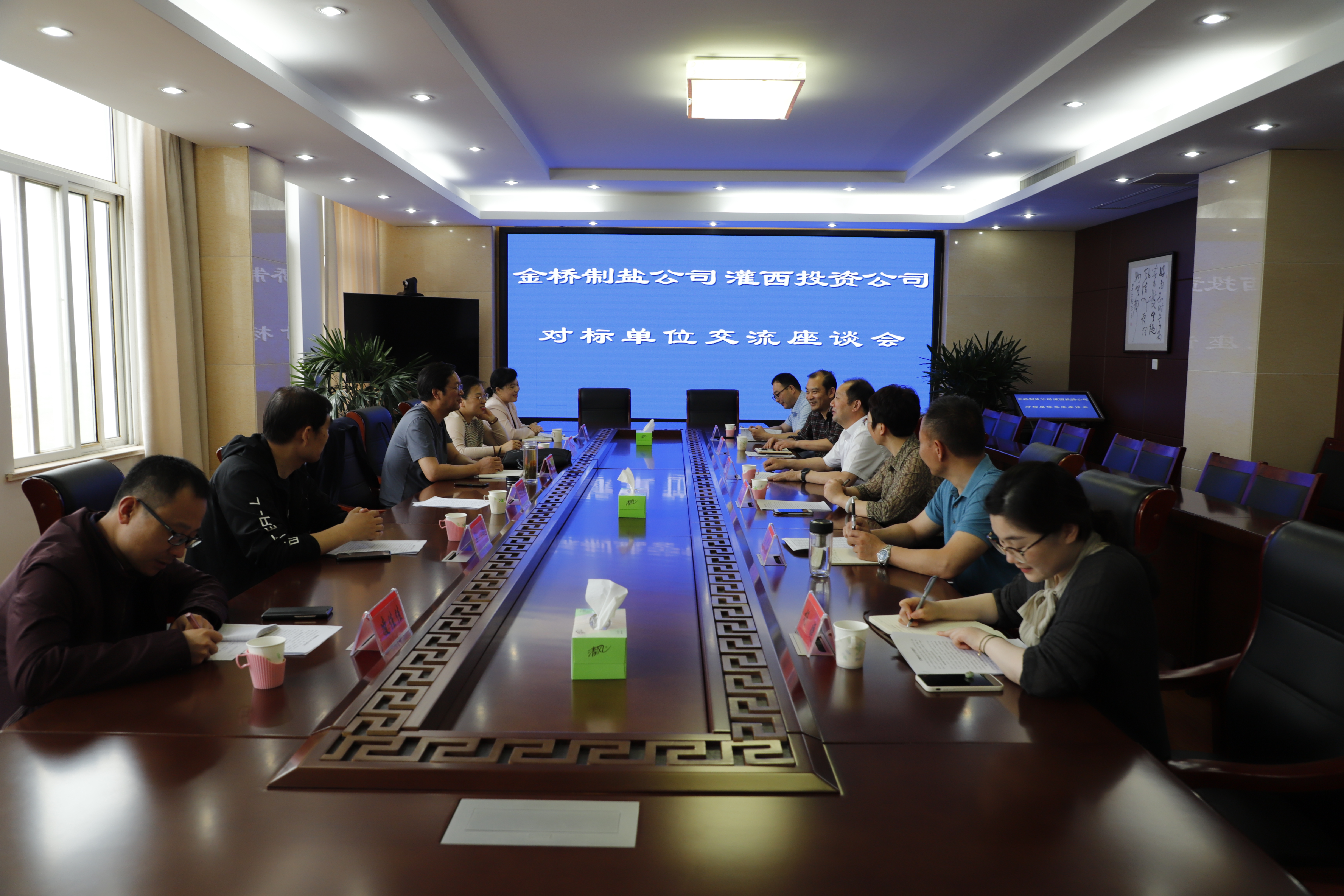 6月3日下午,江蘇金橋制鹽公司黨委副書(shū)記、工會(huì)主席曹開(kāi)明率調(diào)研組一行,來(lái)灌西投資公司進(jìn)行對(duì)標(biāo)單位交流座談。灌西投資公司黨委書(shū)記、董事長(zhǎng)、總經(jīng)理李國(guó)文,黨委副書(shū)記、工會(huì)主席王宏及黨群部門(mén)負(fù)責(zé)人陪同交流。