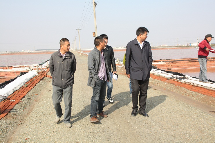 10月27日上午,王德志董事長深入日曬制鹽生產(chǎn)一線,就目前的原鹽生產(chǎn)的重點問題、一線生產(chǎn)現(xiàn)狀等進行了調(diào)研,新河分公司、生產(chǎn)服務中心相關人員陪同調(diào)研。