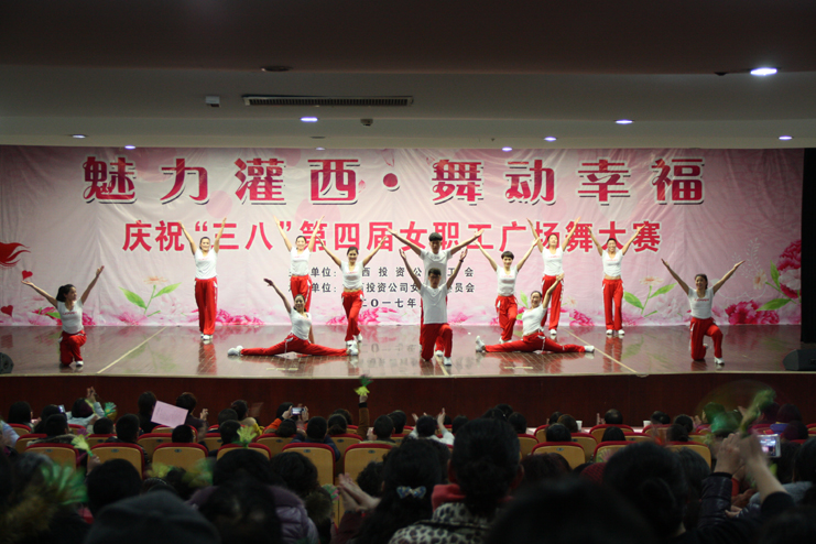 3月8日下午,灌西投資公司第四屆“魅力灌西•舞動(dòng)幸福”廣場(chǎng)舞比賽在灌云縣臨港產(chǎn)業(yè)區(qū)管委會(huì)禮堂舉行,由公司各單位的女工組成的8支代表隊(duì)參加角逐,廣大女工用婀娜的舞姿和精彩的表演慶祝國(guó)際“三八”婦女節(jié)的到來(lái),觀看比賽的職工群眾有400余人。