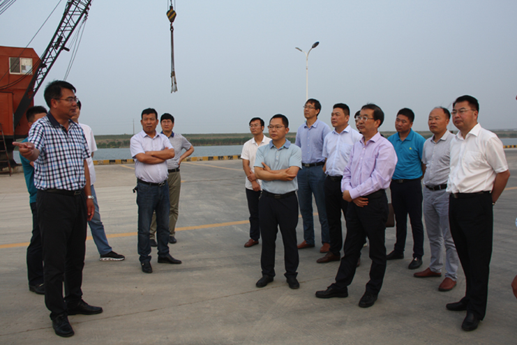 在宵洋物流公司的五灌河碼頭處,集團公司總經(jīng)理胡建明對五灌河碼頭的建設(shè)和運營情況對考察團進行了介紹,他指出,五灌河碼頭是公司利用擁有的內(nèi)河岸線資源開發(fā)起來,主要進行原鹽駁運和建材、化工噸袋等物資的裝卸,碼頭吞吐量年年增長,目前年吞吐量已達(dá)到100萬余噸,二期碼頭擴建項目即將進行,集團公司除了五灌河碼頭,還有一處燒香河內(nèi)河碼頭,也許暫時看不到顯著效益,但隨著江蘇沿海經(jīng)濟開發(fā)的不斷推進,碼頭的資源優(yōu)勢愈加凸顯,將來一定會成為稀缺資源。