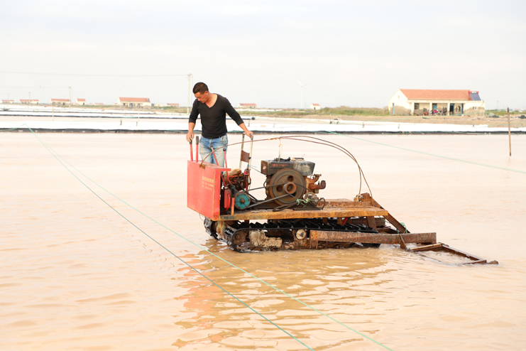 6日下午,在新河制鹽分公司的十二班,扒鹽機(jī)組正在扒鹽,在不遠(yuǎn)處鹽池內(nèi),集鹽機(jī)械正在鹽池內(nèi)緩緩移動(dòng)集鹽,鹽泵運(yùn)轉(zhuǎn)不停,輸鹽上廩,鹽廩上兩名大廩工正在不停筑廩。鹽池內(nèi),有的員工對(duì)破碴作業(yè)機(jī)械進(jìn)行修理,有的員工在整平扒過(guò)鹽的格塊,有的員工在活碴。筆者從該班班長(zhǎng)徐正好處了解到,該公司5號(hào)就開(kāi)機(jī)扒鹽了,下半年以來(lái),十二班已經(jīng)扒鹽7000余噸。在新河制鹽分公司的十一班,班長(zhǎng)葛高劍正帶領(lǐng)員工裝運(yùn)大廩布,做好扒鹽的準(zhǔn)備工作;在埒南制鹽分公司的九班,機(jī)聲隆隆,一名員正開(kāi)著活碴機(jī)械在鹽池內(nèi)作業(yè),不遠(yuǎn)處有幾名員工正用土工布叉格埝,對(duì)灘場(chǎng)進(jìn)行維修亮化;八班有一臺(tái)挖掘機(jī)正在鹽廩旁給裝鹽車(chē)輛上鹽……,日曬制鹽公司鹽灘上到處都活躍著職工們忙碌的身影。