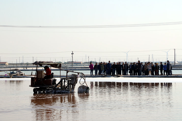 參觀團首先參觀了日曬制鹽公司扒鹽現(xiàn)場,在參觀過程中,聽取了相關情況的介紹,了解了原鹽的生產(chǎn)發(fā)展演變,參觀感受了現(xiàn)代化帶鹵扒鹽生產(chǎn)場景;隨后,參觀團一行參觀了新河制鹽的黨建室和創(chuàng)新勞模工作室。通過參觀,他們一致表示我公司的黨建室給他們留下了深刻印象,尤其是發(fā)揮勞模創(chuàng)新工作室示范引領作用的做法對他們開展黨建工作有較好的啟示。(張明建)