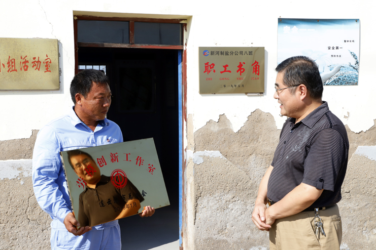 8月22日下午,市總工會副主席陳健一行到工投集團日曬制鹽公司,為連云港市勞動模范祝星星“勞模創(chuàng)新工作室”授牌。