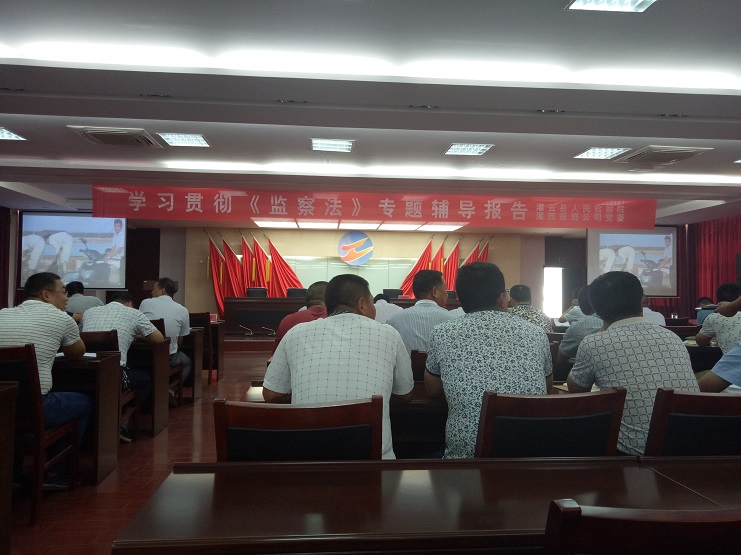 近日,實業(yè)公司全體管理人員及黨風廉政監(jiān)督人員參加了由投資公司舉辦的學習貫徹《監(jiān)察法》培訓活動,聽取了由灌云縣檢察院黨委書記、檢察長陳長春作的《監(jiān)察法》專題輔導報告。