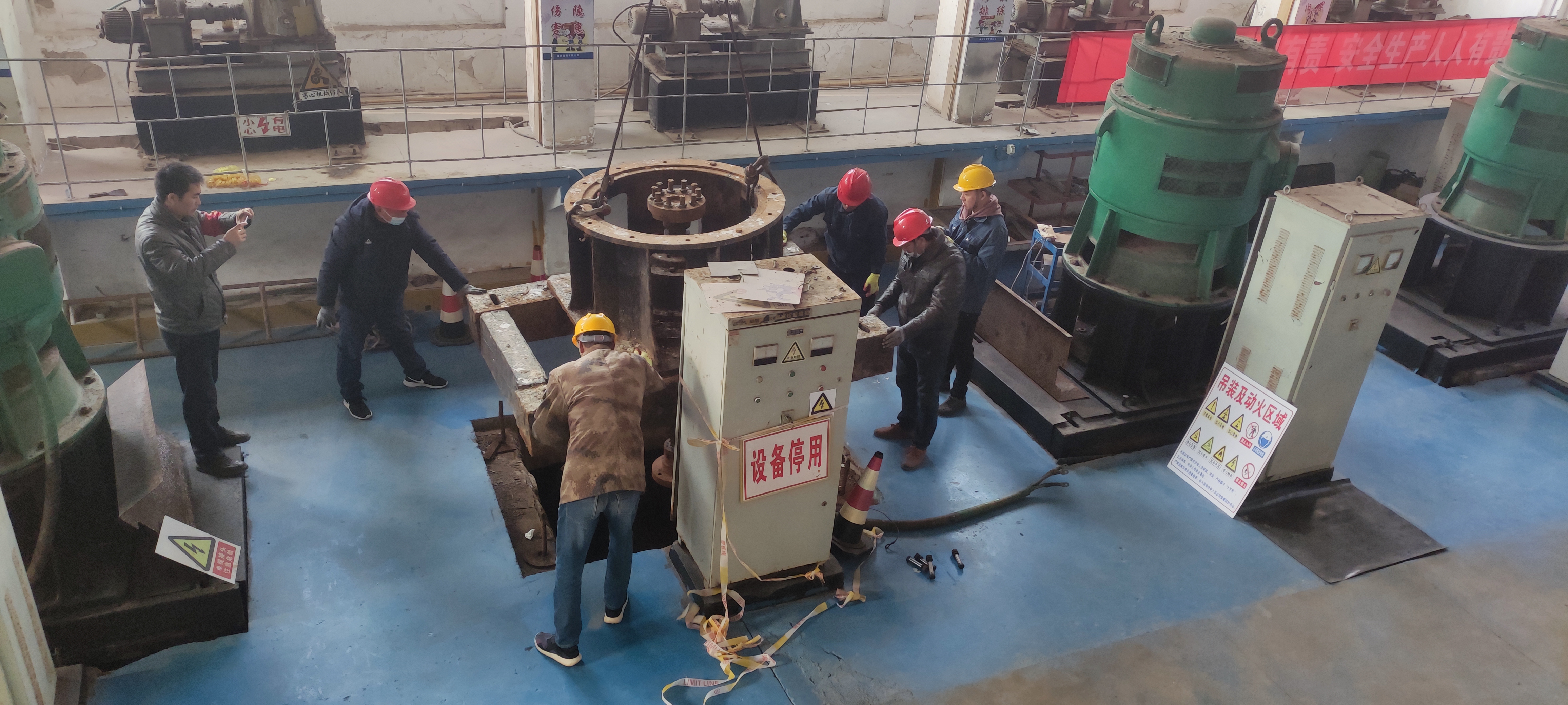 資源管理中心六圩閘揚水站一直承擔海水養(yǎng)殖池塘供水任務。殊不知四號機組長期滿負荷運行,導致四號機泵體出現(xiàn)損壞。當前,正是養(yǎng)殖用水高峰期,為了保證養(yǎng)殖生產(chǎn)正常供水,資源管理中心立即召開會議,部署修泵工作安排,明確分工壓實責任,搶修機泵做到安全監(jiān)護,確保潮汛來臨之前維修到位,夯實安全生產(chǎn)基礎。(資源管理中心)