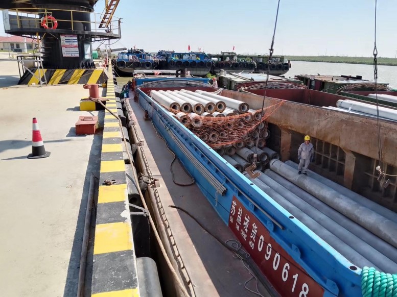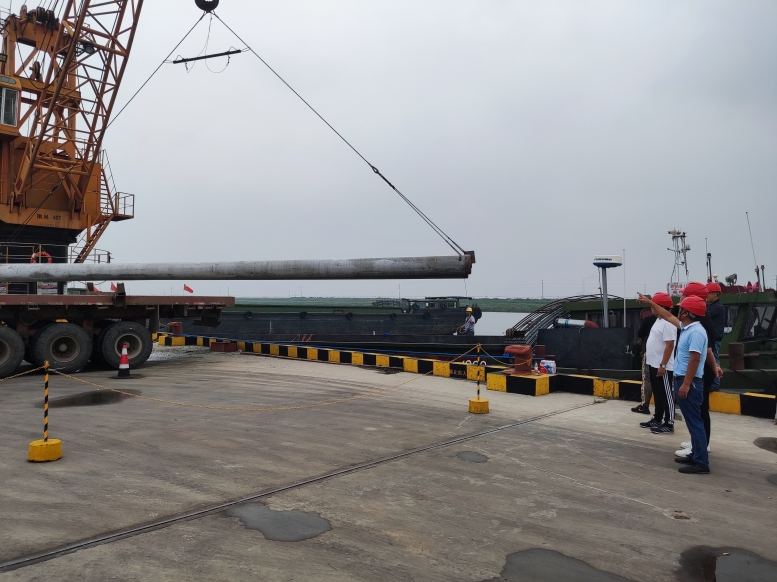 管樁的裝卸和別的貨物相比,安全風險更大,所以在裝卸管樁時,宵洋管理人員要深入現(xiàn)場,緊盯嚴管,對管樁的重要環(huán)節(jié),一邊講解注意事項,一邊手勢指揮,塔吊師傅小心翼翼,嫻熟地拔弄著操作手把,通過塔吊搬運,五噸的管樁在半空中調試到最佳位置,最后平穩(wěn)著落,從船艙吊起的管樁,運送到貨車上,艙內的三名工人,齊心協(xié)力,配合得相當默契,掛在吊機上的管樁,看似簡單的一鉤一掛,不僅要調整管樁擺放角度,還要檢查鋼繩是否牢固,為了安全起見,在船艙和管樁之間,又架起了一層防護網(wǎng),防止掛鉤工摔倒跌落,采取一系列防范措施,確保萬無一失。經(jīng)過一天的忙碌,望著遠去車輛,每當圓滿完成當天卸管樁任務后,工人們憨厚老實臉上,露出了滿意的微笑,這就是我們宵洋工人搬卸管樁情景的真實寫照!(宵洋物流公司胡秀同)