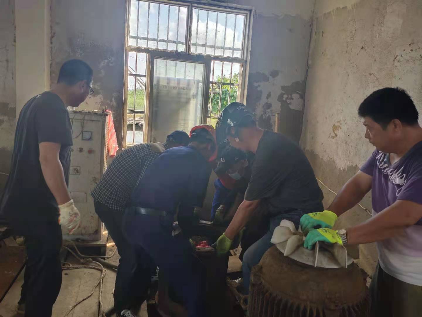 鑒于此次疫情已經(jīng)迅速波及國(guó)內(nèi)多個(gè)省市,防控形勢(shì)十分嚴(yán)峻。當(dāng)前又正值海水養(yǎng)殖戶用水高峰,連續(xù)多日供水使六圩閘大站5臺(tái)155KW軸流泵其中三臺(tái)出現(xiàn)故障,小站2臺(tái)55KW軸流泵全部發(fā)生故障,機(jī)泵不能正常運(yùn)轉(zhuǎn)。資源管理中心當(dāng)即召開(kāi)班子會(huì)議,對(duì)防疫和修泵工作進(jìn)行統(tǒng)籌部署,明確分工,壓實(shí)責(zé)任,積極做好防疫宣傳引導(dǎo),不留死角;搶修機(jī)泵做到安全監(jiān)護(hù)管理到位,確保潮汛來(lái)臨之前要維修到位,不誤供水。為了搶時(shí)間趕進(jìn)度,該公司經(jīng)理江德全多方協(xié)調(diào),從兄弟單位借調(diào)2名年輕機(jī)修工錢(qián)明星和楊加棟來(lái)協(xié)助機(jī)修組,并安排六圩閘站全體員工參與。他們頂著機(jī)房30多度的高溫加班加點(diǎn),中午吃著快餐,飯后又立即投入搶修工作中,通過(guò)六天的連續(xù)奮戰(zhàn),機(jī)器全部維修到位,保證了泵站及時(shí)供水。(資源管理中心宣)