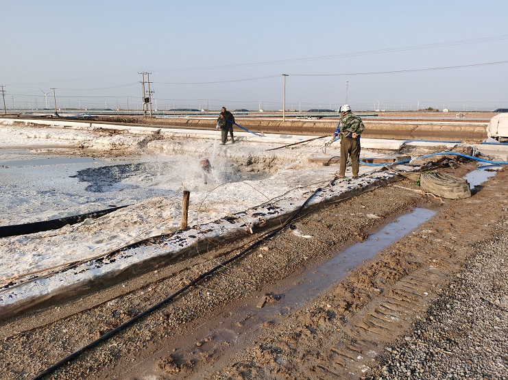 為保證班組生產(chǎn)工藝流程,提升原鹽品質(zhì),近日埒南公司按今年計劃分別對4個班進行硫酸鈣清理工作。預計11月底此項工作將全部結(jié)束。每塊除硫池將提升5000方左右的蓄鹵能力,可以達到多塊結(jié)晶池同時使用,讓班組的生產(chǎn)工作安排得到更好的調(diào)配。