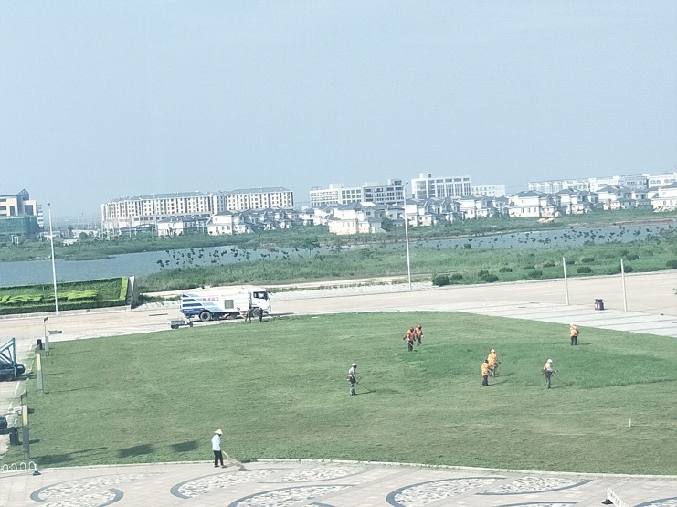 近日來,隨著高溫天氣的延續(xù),也正值樹木生長茂盛的時候,新區(qū)綠化帶內(nèi)的雜草叢生直接影響了美觀。為此,南翼公司于7月18--20日組織綠化人員對雜草進行清理。10余名綠化工人背著拴草機,頂著烈日、冒著酷暑在新區(qū)綠化帶內(nèi)清除雜草。雖然轉(zhuǎn)眼間汗水濕透了他們的衣服,但是在她們堅持了幾小時的工作,順利完成了此項任務,綠化帶又整齊如一,并受到有關領導的高度贊揚。(王薇)