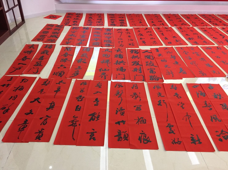 此次活動(dòng)共邀請(qǐng)了3位書法愛好者為職工免費(fèi)寫春聯(lián)、贈(zèng)春聯(lián),紅色的春聯(lián)和熱鬧的人群將活動(dòng)現(xiàn)場(chǎng)映襯得年味十足。書法愛好者們飽含熱情,擺開書案,攤開宣紙,揮毫潑墨,將真誠(chéng)的祝福賦諸筆端。宵洋物流的職工們紛紛趕來(lái)現(xiàn)場(chǎng)排隊(duì)幫忙,互相談?wù)撝鞲贝郝?lián)的寓意,有的根據(jù)新年心愿從準(zhǔn)備好的春聯(lián)中精心挑選特邀書寫,有的期望書法愛好者為其精心定制現(xiàn)場(chǎng)創(chuàng)作。濃濃的情意、真摯的祝福溢于字里行間,大家拿著一幅幅寓意喜慶,飽含祝福的春聯(lián),喜笑顏開,不停表達(dá)著對(duì)灌云縣海事局和縣書法協(xié)會(huì)的感謝。(宵洋物流 邱利民)