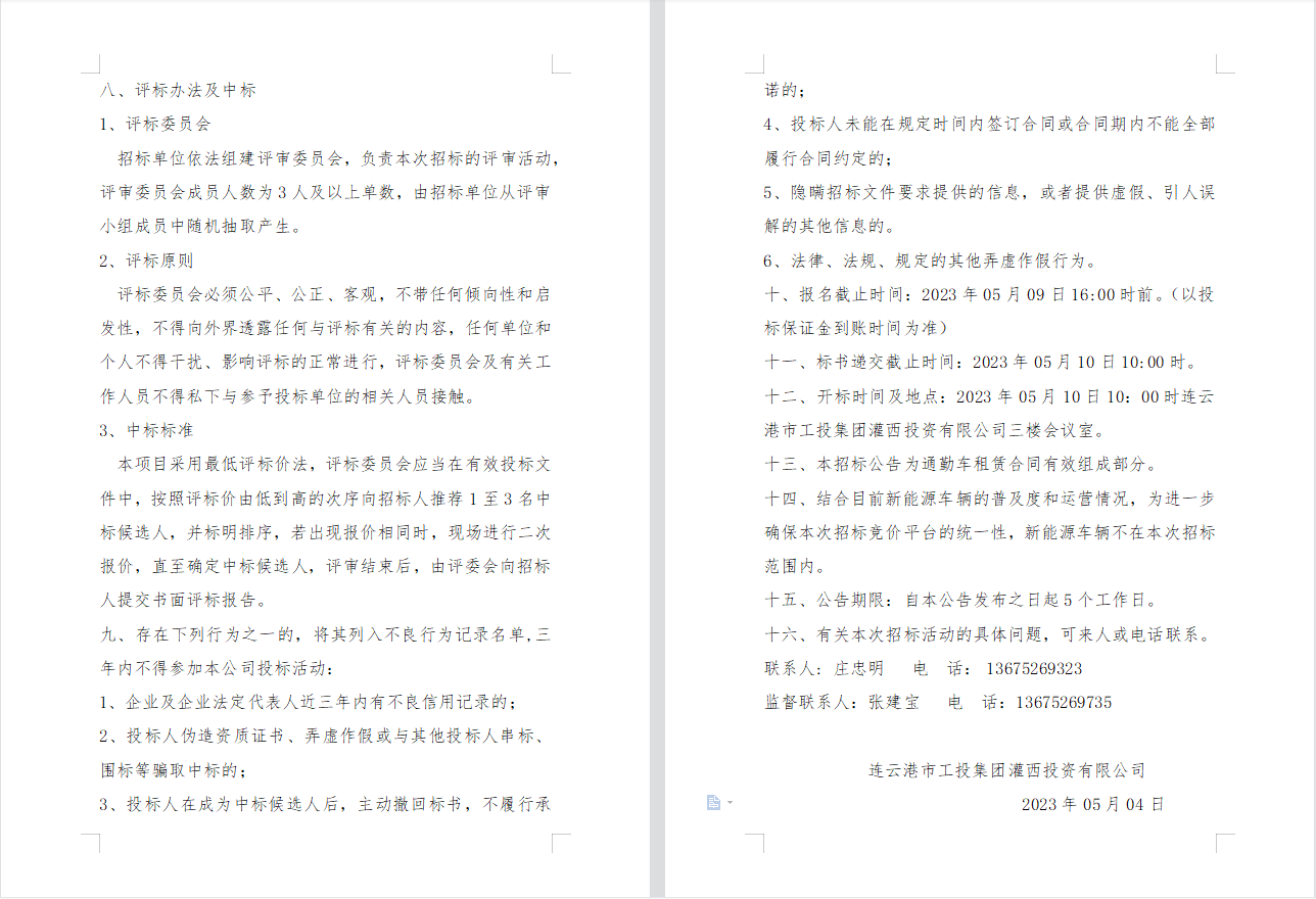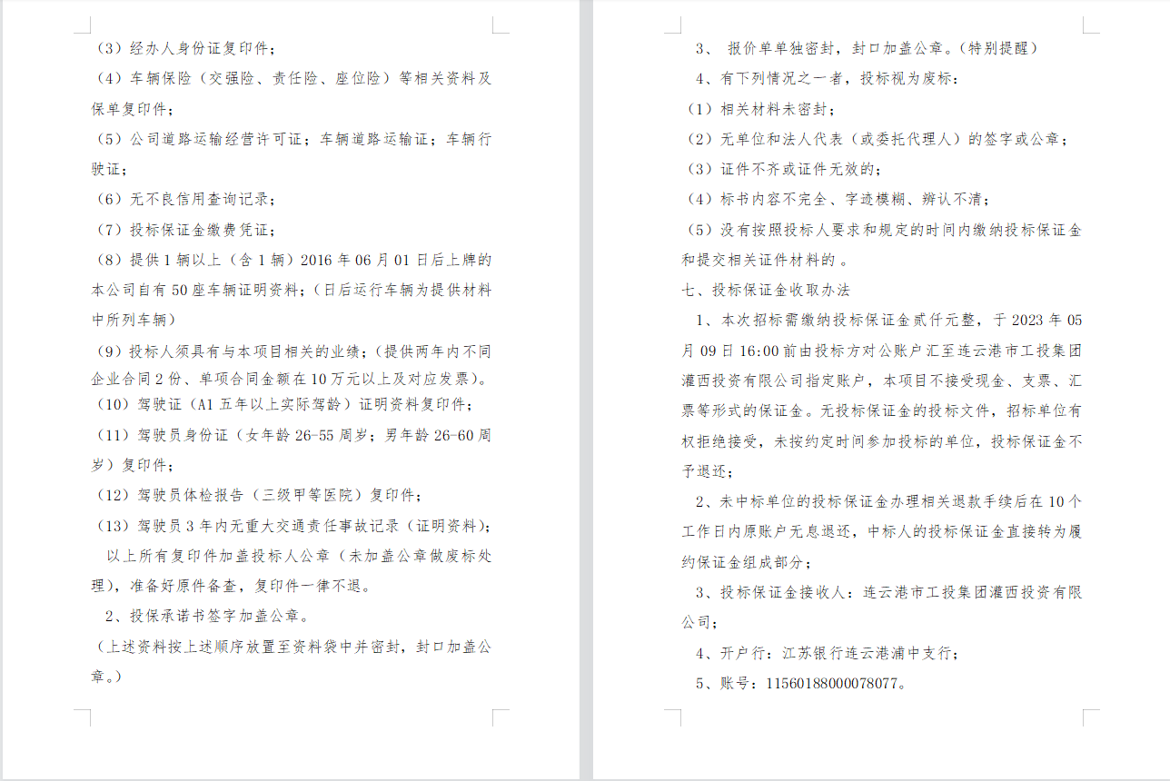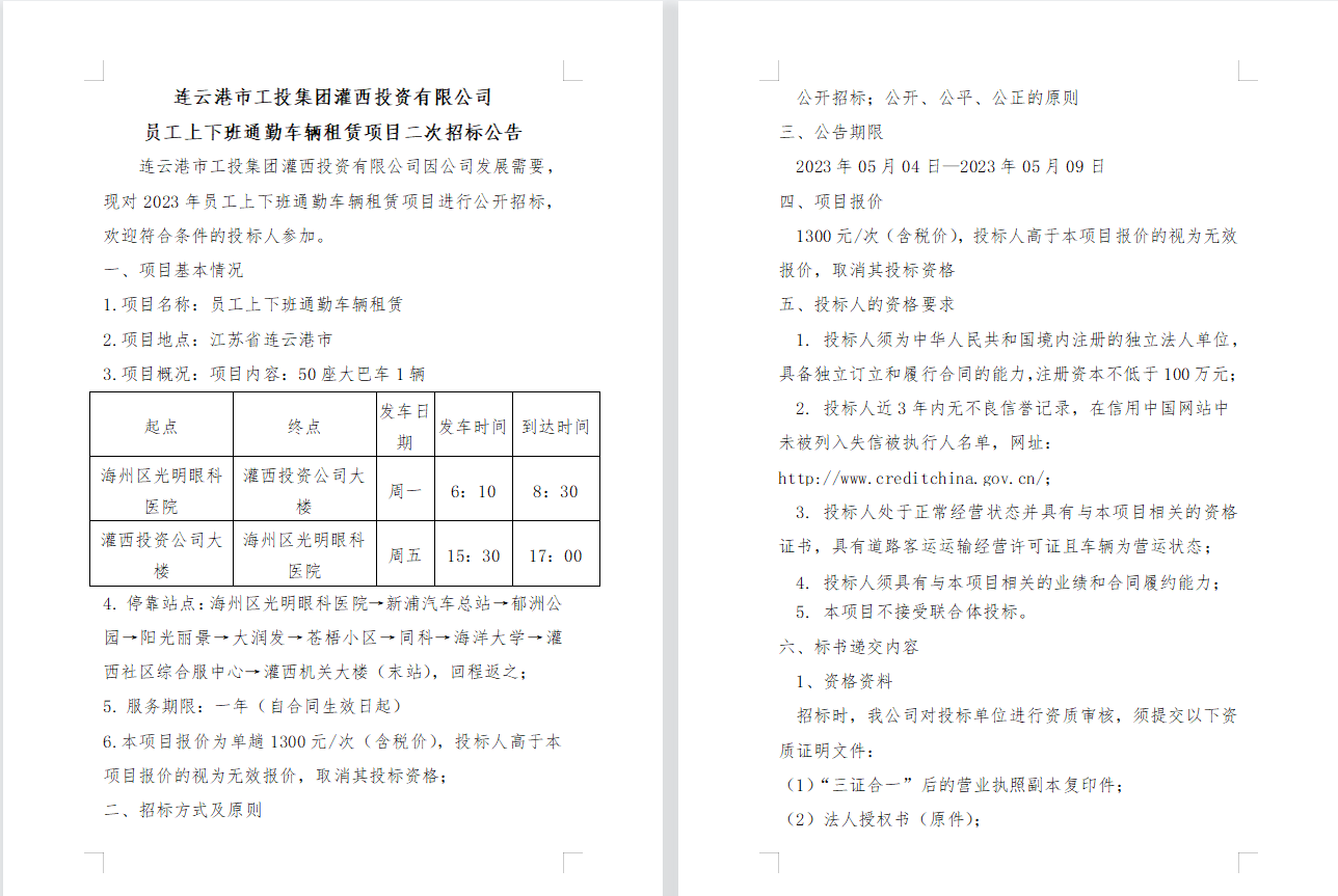 連云港市工投集團(tuán)灌西投資有限公司 員工上下班通勤車(chē)輛租賃項(xiàng)目二次招標(biāo)公告