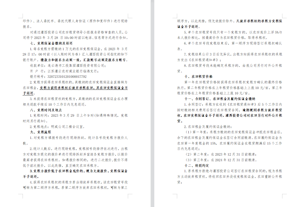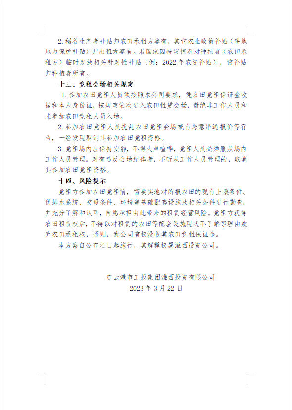 2023年灌西投資公司農(nóng)田公開競租三次公告