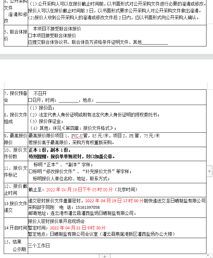密封報(bào)價(jià)開(kāi)啟時(shí)間及地點(diǎn):2022年04月21日前,如有特殊情況時(shí)間另行通知。