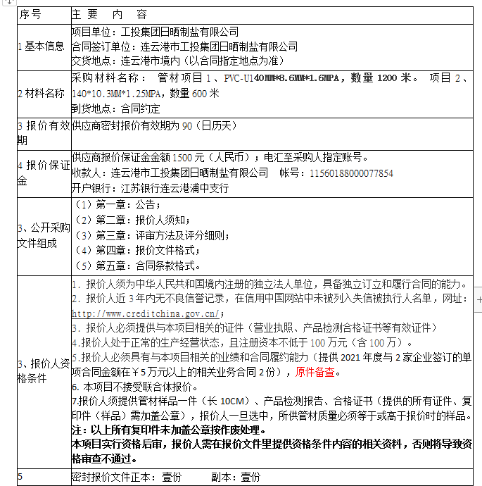 報(bào)價(jià)保證金接收人:連云港市工投集團(tuán)日曬制鹽有限公司。