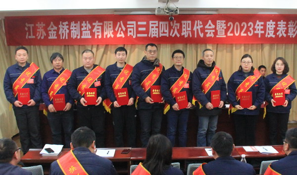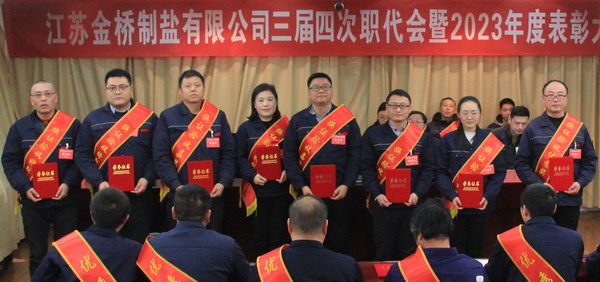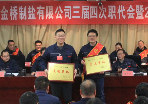 2月2日上午,金橋制鹽公司召開三屆四次職代會暨2023年度表彰大會。公司黨委書記、董事長、總經(jīng)理田磊作《工作報告》,黨委副書記、紀(jì)委書記、工會主席曹開明主持大會,公司領(lǐng)導(dǎo)班子成員及職工代表出席會議。