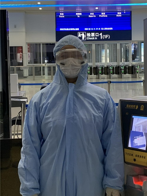 一天晚上,進(jìn)站口急匆匆來了一個女孩拖著3個大箱子,就差幾分鐘列車就要開了,女孩急著說,完了完了,趕不上火車了,朱詠梅協(xié)助醫(yī)護(hù)人員幫她測完體溫,顯示正常,朱詠梅拿起她的行李,幫助她進(jìn)行箱包檢查,檢票、上、下電梯……女孩一邊跑一邊和她說,她是去英國上學(xué)的,因這次疫情的影響,已經(jīng)3次被改簽了,如這次趕不上列車,可能再也沒有機(jī)會去上學(xué)了;朱詠梅在列車開動前把她送上了車,女孩對她連聲感謝……