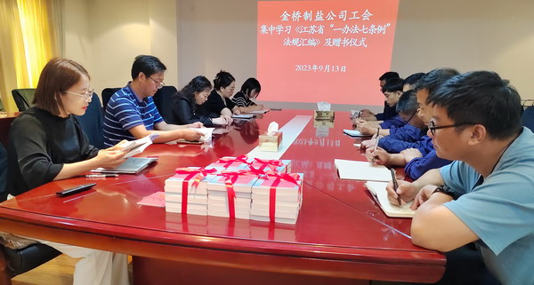 為落實市總及集團工會相關(guān)要求, 9月13日,我公司工會舉辦集中學習《江蘇省“一辦法七條例”法規(guī)匯編》活動及贈書儀式。公司工會負責人,各分會、人資部門、安全部門負責人,部分職工代表參加。
