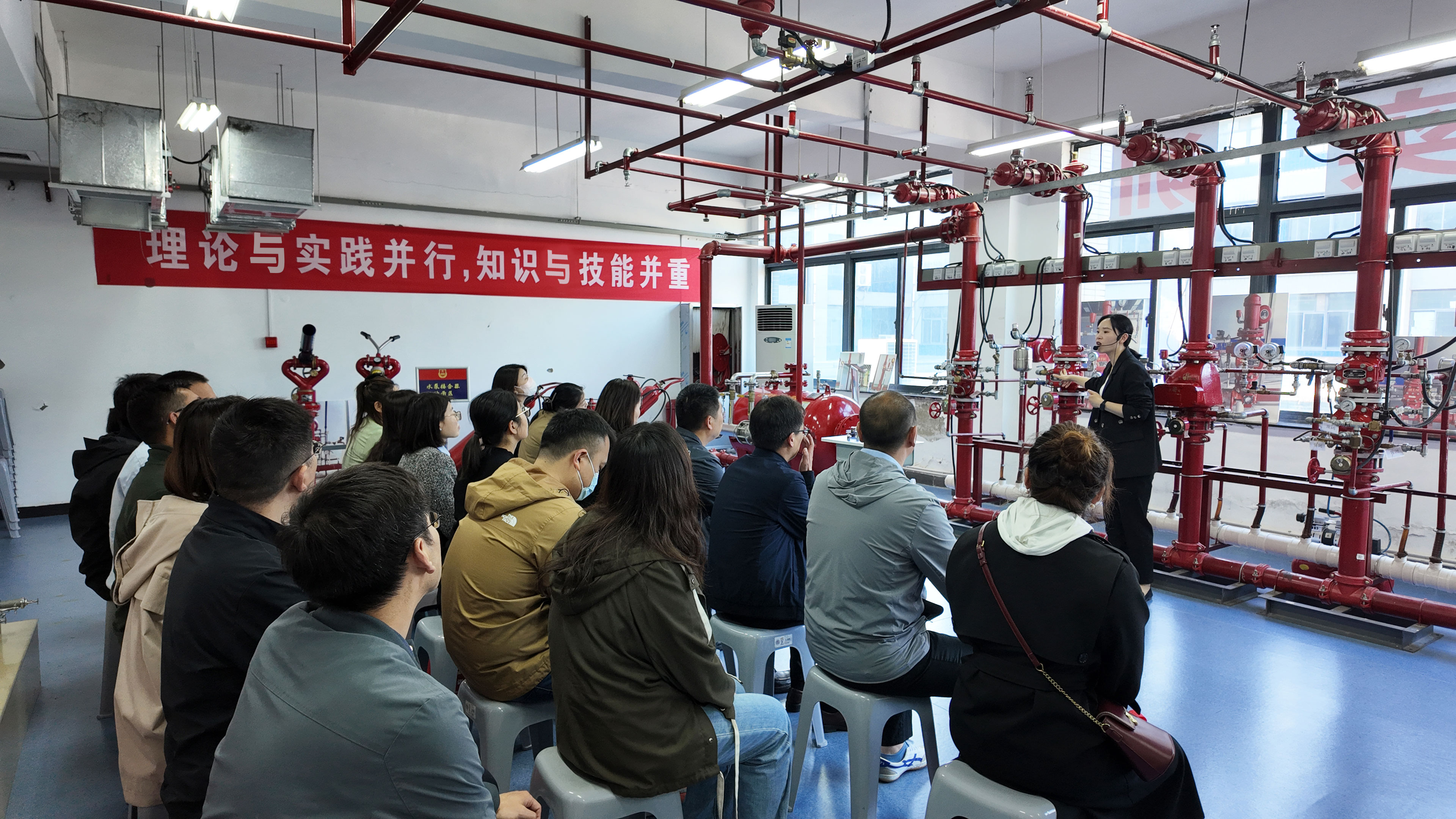 培訓(xùn)中,具有注冊消防工程師資質(zhì)的培訓(xùn)老師運用理論授課、實地講解、多媒體互動等多種教學(xué)方式,使參訓(xùn)職工快速了解并掌握建筑常見消防設(shè)施及消防器材的動作原理和操作技能。“授人以魚,不如授人以漁?!痹谂嘤?xùn)過程中,老師利用學(xué)校獨特的現(xiàn)場教學(xué)場景,針對九小場所“三合一”現(xiàn)象、違規(guī)違章動火作業(yè)、常見電氣火災(zāi)隱患等實際問題進行了深入剖析和講解,并重點強調(diào)了日常消防防范管理工作的程序和重點,令大家受益匪淺。