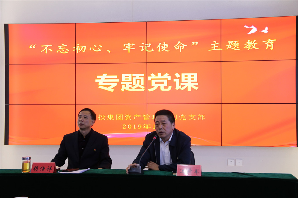 | 為教育引導黨員干部不忘初心,牢記使命,擔當作為,開拓創(chuàng)新,奮力譜寫金融工作新篇章,10月10日下午,資產(chǎn)管理公司黨支部舉行“不忘初心、牢記使命”主題教育黨支部書記講黨課活動,資產(chǎn)管理公司黨支部書記、董事長胡傳祥同志講授“初心不改,擔當作為,創(chuàng)造無愧于時代的工作業(yè)績”主題黨課,集團黨委第一指導組同志到會指導。