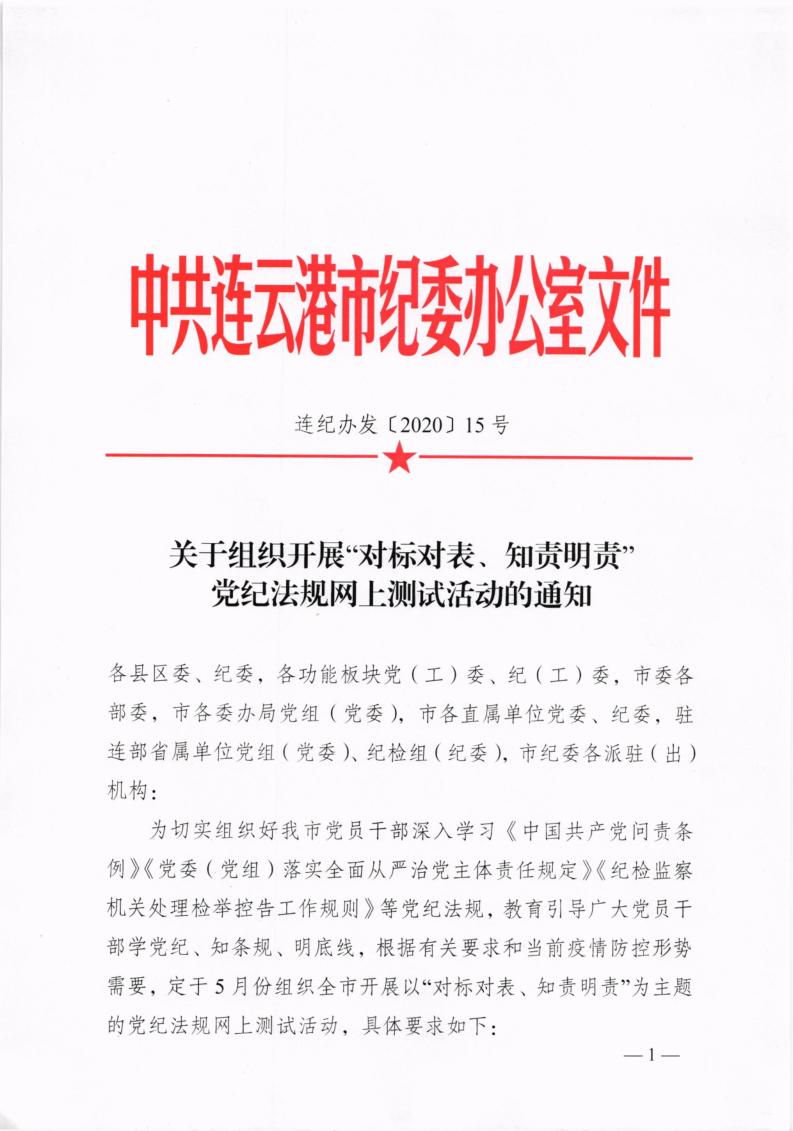 關于組織開展“對標對表、知責明責”黨紀法規(guī)網(wǎng)上測試活動的通知