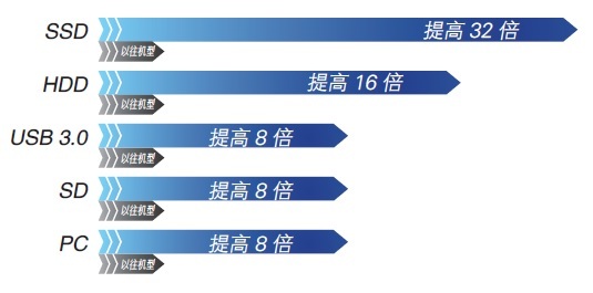 數(shù)據(jù)傳輸至存儲(chǔ)媒介的速度max達(dá)到舊機(jī)型的32倍。
