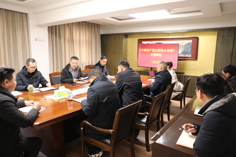 新年上班第一天,青口投資公司黨委召開理論學習中心組(擴大)學習會,第一時間對新修訂的《中國共產黨紀律處分條例》進行專題學習。中心組成員以及各部門負責人參加學習。公司黨委書記史祥平主持會議。