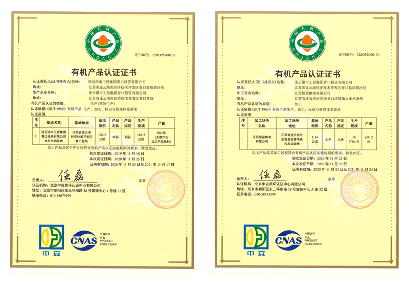 近期,我公司種植的水稻與加工的成品大米順利通過(guò)有機(jī)認(rèn)證,獲得有機(jī)產(chǎn)品認(rèn)證證書。