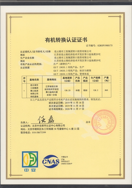 11月25日上午,我公司種植的“南粳9108”有機(jī)大米經(jīng)過嚴(yán)格認(rèn)真的檢測和審核,獲得北京中安質(zhì)環(huán)認(rèn)證中心頒發(fā)的有機(jī)轉(zhuǎn)換認(rèn)證證書。