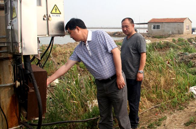 6月21日,公司董事長、黨委書記胡傳法到 所屬 聯(lián)系點(diǎn)三洋、黃沙分場的付河碼頭排淡河啟閉閘、十八圩池塘用變電箱等處集中突擊 檢 查安全和防汛。