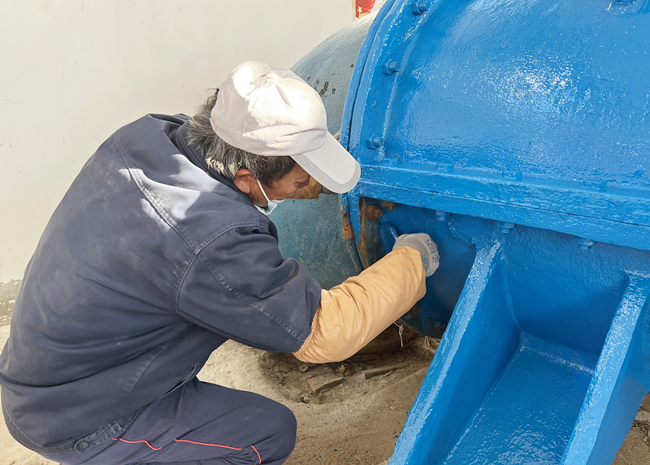 供排水設(shè)備檢修養(yǎng)護(hù)是入冬前的一項(xiàng)重要工作,立足于“不停水、保質(zhì)量”的原則,服務(wù)中心揚(yáng)水站抓住生產(chǎn)用水間隙統(tǒng)籌安排部署,做實(shí)揚(yáng)水站水泵機(jī)組、機(jī)電設(shè)備、配電設(shè)施的檢修預(yù)案。對(duì)水泵機(jī)組設(shè)備進(jìn)行除塵、除銹、加潤滑油、更換老化部件。