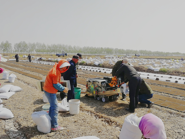 在科學(xué)浸種催芽、秧板田板面整平整細(xì)、適期精量播種的良好基礎(chǔ)上,今年繼續(xù)沿用地頭播地龍和大棚暗化相結(jié)合方式育秧,二分場(chǎng)7隊(duì)率先啟動(dòng)了地頭播地龍育秧,暗化育秧已于4月24日開(kāi)始浸種,計(jì)劃于28日播盤(pán)。(陳?。?/span>