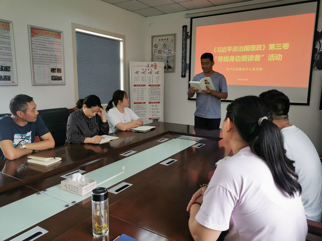 近期,生產(chǎn)生活服務(wù)中心黨支部組織黨員同志深入學(xué)習(xí)《習(xí)近平談治國(guó)理政》第三卷內(nèi)容,黨員們紛紛上臺(tái)朗讀自己喜愛的章節(jié),在學(xué)習(xí)中聯(lián)系工作理解思想理論,進(jìn)一步加強(qiáng)對(duì)習(xí)近平新時(shí)代中國(guó)特色社會(huì)主義思想的認(rèn)識(shí),聚焦自身實(shí)際深入學(xué),深刻感悟我將無我的情懷和自我革新的意識(shí),切實(shí)用習(xí)近平新時(shí)代中國(guó)特色社會(huì)主義思想武裝頭腦、指導(dǎo)實(shí)踐、推動(dòng)工作。(牛 瑩)