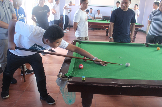? ? 臺球初賽采用三局兩勝淘汰賽制,抽簽決定比賽對手和上場順序,第一輪勝出者進入下一場比賽,前四名選手進入決賽。本次共有32名選手報名,參賽隊員雖然都是業(yè)余愛好者,但每名參賽選手態(tài)度非常認真,臺球桌前,他們不停地走動尋找最佳擊球點,架桿、出桿、撞球、落袋,過程緊張而激烈,博得觀眾陣陣掌聲。經(jīng)過多輪角逐,服務中心張建軍獲本次比賽的冠軍,大新農(nóng)場徐振濤、候玉剛及服務中心張根林獲得二等獎。