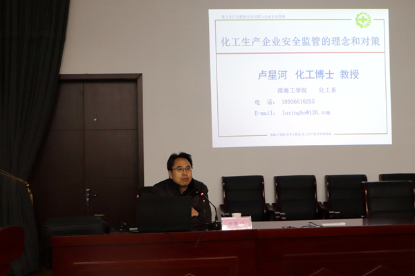 3月19日上午,公司特邀淮海工學(xué)院化工系盧星河教授作題為《化工生產(chǎn)企業(yè)安全監(jiān)管的理念和對策》安全知識講座。