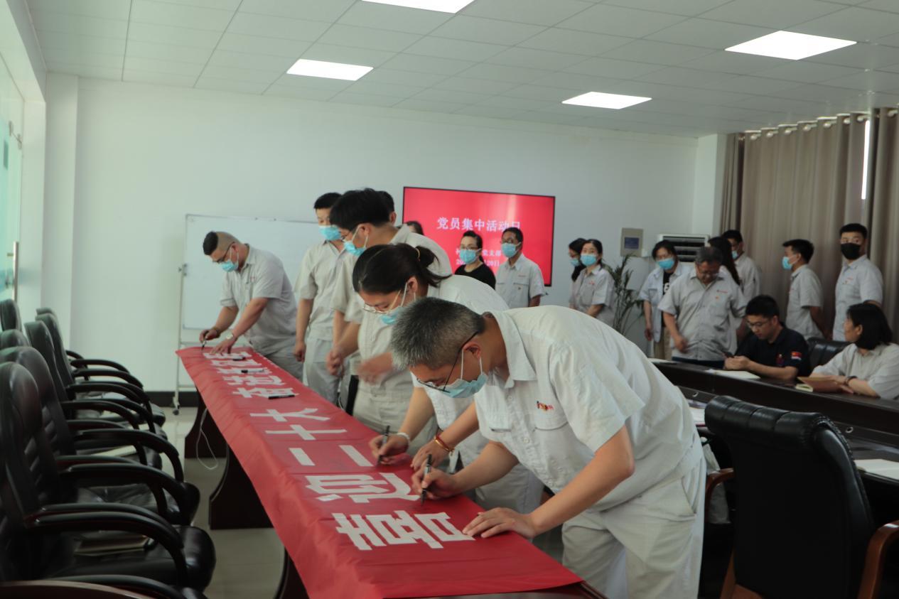 在七一即將來臨之際,公司組織全體黨員開展“喜迎二十大,奮進(jìn)新征程”黨員集中活動(dòng)日。活動(dòng)中,與會(huì)黨員集體宣誓,重溫入黨誓詞,回憶入黨初心,并在條幅上簽名,作出鄭重承諾。公司黨支部表彰一批優(yōu)秀共產(chǎn)黨員,激勵(lì)全體黨員守初心、勇?lián)姑?、攻?jiān)克難、建功立業(yè)。