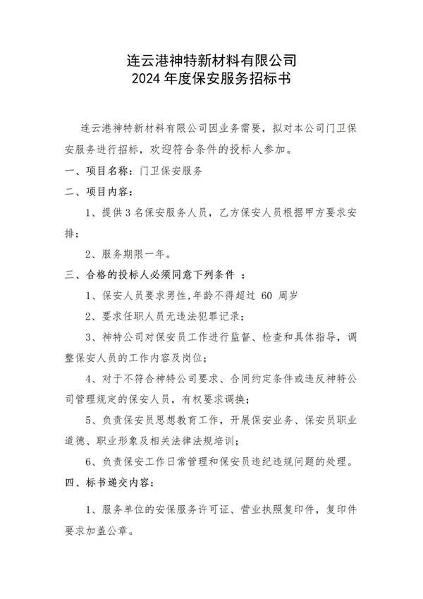 神特公司2024年保安服務(wù)邀請(qǐng)招標(biāo)公告