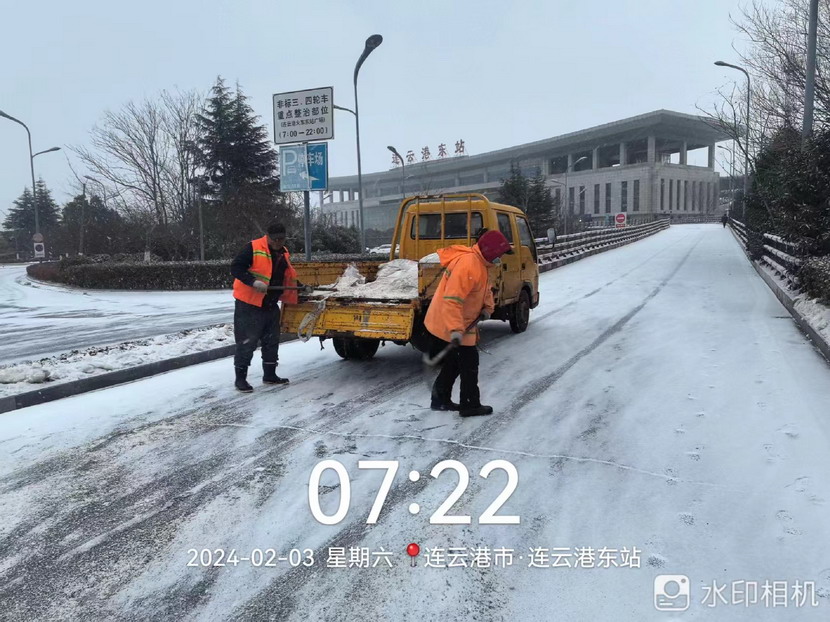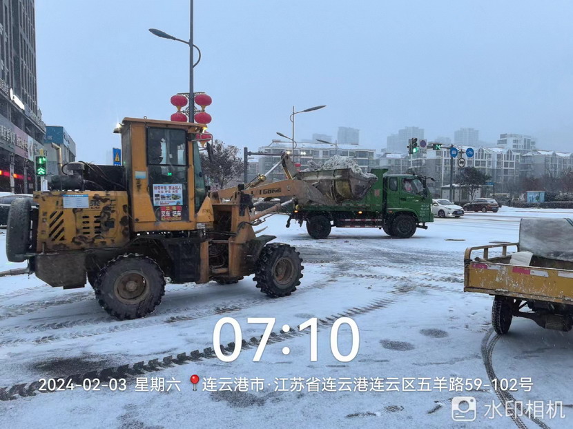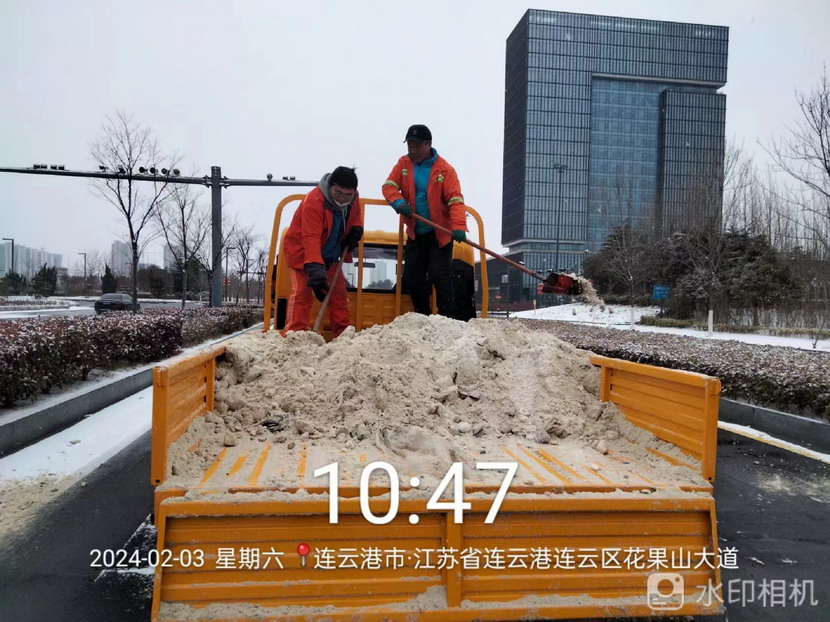 “雪情即戰(zhàn)情”。天剛蒙蒙亮,猴嘴、開(kāi)發(fā)區(qū)、連云、墟溝····連云港火車(chē)東站、馬山立交、黃海大道、花果山大道、東方大道·····到處是臺(tái)北、華茂公司的“橙色”突擊隊(duì)