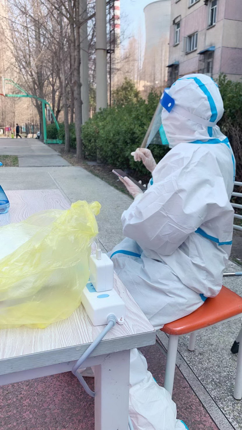 3月8日,臨時黨支部成立,黨員志愿者們隨即奔赴社區(qū)核酸檢測現(xiàn)場。當天,志愿者們穿上防護服?!澳愫?,請戴好口罩,出示健康碼?!薄澳愫茫@邊人比較少,請往這邊走,保持一米距離?!本S持現(xiàn)場秩序、檢查健康碼、登記核酸個人信息……志愿者們堅守在各自責任區(qū),細心、耐心回答居民們的各類問題,忙得連喝水的時間都沒有。細致周到的服務、無私的奉獻精神,得到了社區(qū)居民們的一致認可和贊揚。