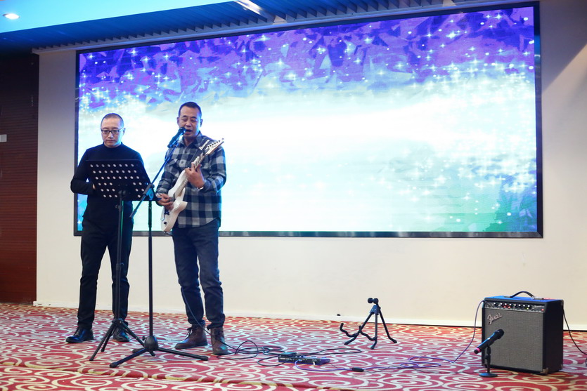 聯(lián)歡會節(jié)目豐富多彩,有獨唱、小合唱、魔術(shù)、游戲等。精彩的表演贏得了全場陣陣歡聲笑語,雖然表演很業(yè)余,但大家各個精神抖擻,充分展示了公司員工的蓬勃朝氣和奮發(fā)進取的精神。在熱烈氛圍的感染下,公司領(lǐng)導(dǎo)也紛紛上臺表演節(jié)目為晚會助興,楊善革《我愛你塞北的雪》對新年的祝福和期盼,表達了迎新年的喜悅心情。公司黨委書記、董事長、總經(jīng)理王德志一曲《南泥灣》更是唱出了公司全體員工熱愛祖國,熱愛企業(yè),立志艱苦奮斗、自力更生,決戰(zhàn)2022,打贏臺北保衛(wèi)戰(zhàn),再創(chuàng)臺北新輝煌的決心。